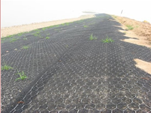 加筋麥克墊一種適用于永久性植被再生的抗沖刷網狀結構,由六邊形雙絞合金屬網及三維材料復合構成,兼具土工材料及格網的優(yōu)點。土工材料為聚丙烯材質,格網鋼絲通常選用防腐性能好的鍍10%鋁鋅合金鋼絲。