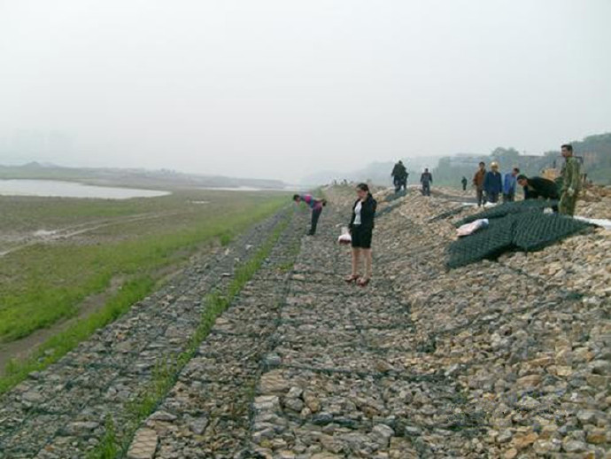 河堤,這樣減輕對河堤的損害。 在網(wǎng)箱上面,鋪撒一層土,可以生長草;自然也會沉降塵土,自然生長雜草等。 石籠網(wǎng)也可以用于引導河流水,河流一般會順著固有的河槽流動,河道可能有自然形成的彎曲的河道,如果發(fā)生洪水,水量巨大,水流湍急,水流會在慣性下,趨于直向流動,會猛烈地沖擊原來的河槽和堤壩,有可能使河流改道,那樣將造成巨大的災難。