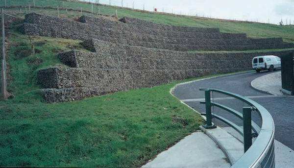 綠格網(wǎng)箱可用做于擋土墻和鋪設(shè)的護(hù)坡,網(wǎng)箱內(nèi)的填充料為松散體(硬質(zhì)石塊最佳,也可用一些建筑混凝土殘余料等)。存在較多的孔隙,利于砌體后填土和護(hù)坡下土層中孔隙水的排出,地表水一旦入滲土體中,則可用過砌體較快的排出,有效降低地表水位。綠格網(wǎng)結(jié)構(gòu)在滑坡治理以及泥石流的防治工程中,水及時(shí)排出降低了墻破壞的幾率,同時(shí)因綠格網(wǎng)擋墻存在縫隙,從根本解決了水浪后退時(shí)產(chǎn)生的真空吸力,加上綠格網(wǎng)擋墻表面良好的變形能力能夠有效的緩沖突發(fā)的外力沖擊。