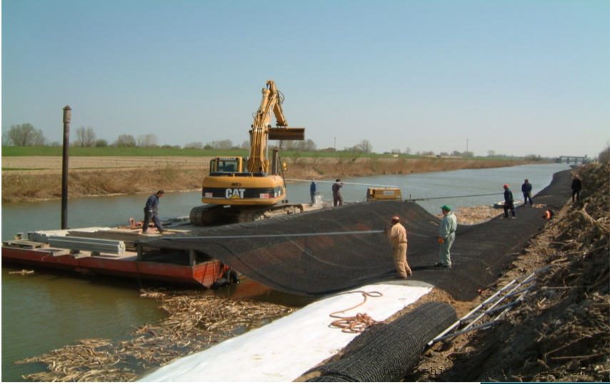 4、由于表面粗糙,使風(fēng)、水流在網(wǎng)墊表面產(chǎn)生無數(shù)渦流,因而產(chǎn)生消能作用,促使其攜帶物沉淀網(wǎng)墊中;