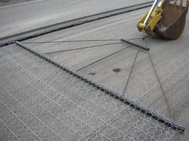 我廠生產(chǎn)的路面加筋網(wǎng)采用國內(nèi)外先進機器設(shè)備編織而成的雙絞合六邊形金屬網(wǎng), 也叫金屬路面加筋網(wǎng),產(chǎn)品是由網(wǎng)孔規(guī)格為8×10cm的雙絞合金屬網(wǎng)面制成,并將橫向加筋棒以大約16cm的間距編織到網(wǎng)面中路面加筋網(wǎng)的卷長50m,卷寬為3m或者4m。為了防止路面加筋網(wǎng)的腐蝕,采用鍍鋅(或者鍍高爾凡)產(chǎn)品。網(wǎng)面鋼絲的直徑可達2.00M-3.00MM,加筋棒的直徑可達5MM。為了提高網(wǎng)片的牢固性,網(wǎng)面的邊絲采用比網(wǎng)絲粗0.4mm-1mm的鋼絲,所有設(shè)計均符合國家標(biāo)準(zhǔn),質(zhì)量無可挑剔。