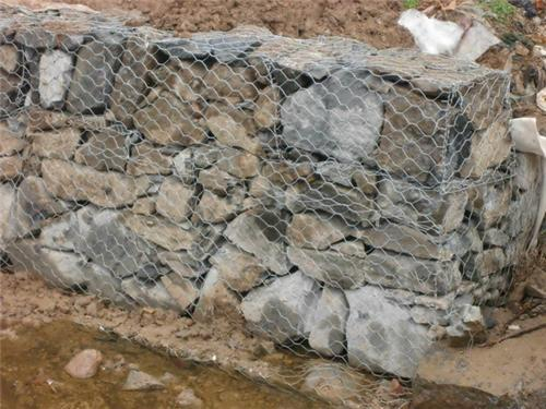 固濱籠具有固堤防沖刷的作用, 固濱籠工藝是指將特種鋼絲由專用機械編織成雙絞、蜂巢形網(wǎng)目的格網(wǎng)片,根據(jù)工程設計要求,裁剪、設計、組裝成箱籠并裝入塊石等填充料后連接成一體的結構,用作提防、路基防護工程。